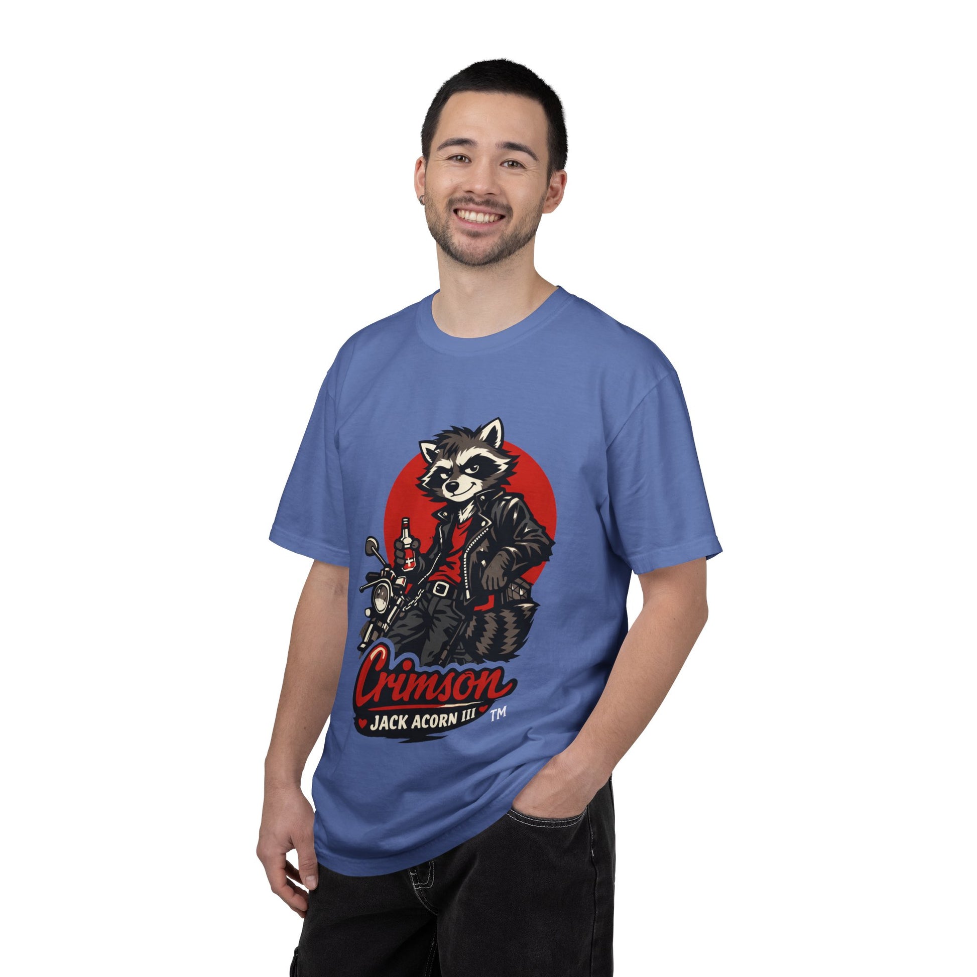 This heavyweight garment-dyed tee wears like a well-loved favorite from the first pull. On soft, ring-spun cotton you will find Crimson Jack Acorn III standing
